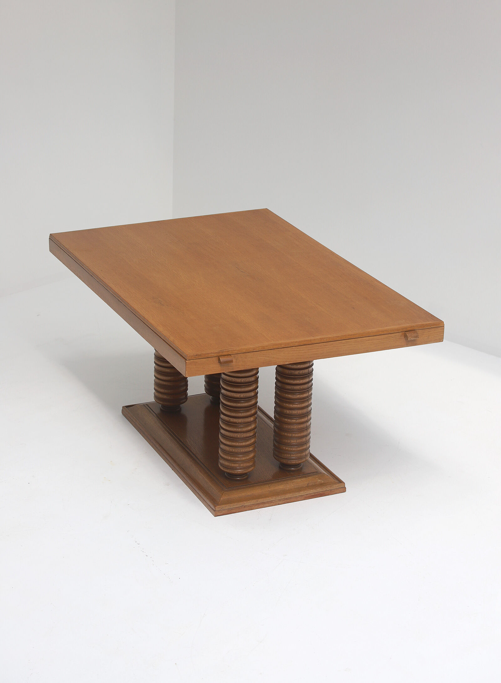 Typical of the period, the piece makes a bold statement with its sturdy, geometric design. This is a unique deco style dining table, made of an exotic wood and highly french polished. Dining room sets are french, italian and argentine vintage art deco furniture from the 1930′s and fully restored. Dining table, finish cherry c veneer. If you are not satisfied with the option art deco dining room table, you can find other solutions on our website.
